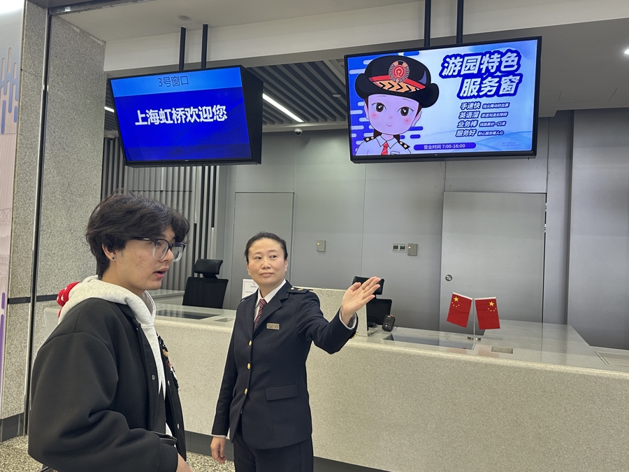今年,车站专门为我开了“游园特色服务窗”。我特别激动,觉得这是对我17年工作的认可。到了进博会期间,我的这个特色窗又变成进博专用窗。当时,有个外国参展商来买票,我用英语帮他核实参展证件,还递上中英文双语服务手册,给他指场馆的地铁接驳路线,他竖起大拇指说“Clear and helpful”,那一刻我特别自豪——原来我17年的坚守、12字目标的践行,都能变成服务进博的力量。